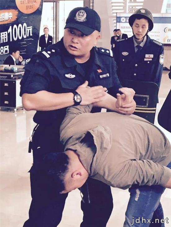 陈海阳用战术手电筒对准该男子的眼睛,怒喝一声:“警察,别动!”随后,还枪入套、伸手控腕夺刀,一手快速摁住该男子后脑勺,将他按在地上,刀跟着落地……整个动作行云流水。