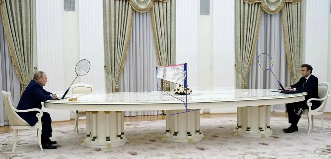 报道称,马克龙和普京7日坐在长约4米的白色桌子两端讨论乌克兰危机的照片,令一些观察人士震惊。一些外交人士等暗示,普京可能是想传递外交信息。