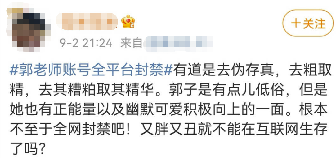 郭老师在各大平台注册的账号被封了,她的700万粉丝一夜之间作鸟兽散。