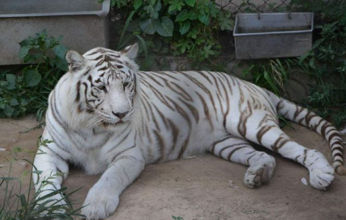 白虎是属于变异品种,是普通的老虎白桦现象造成的,一般是白色的毛发,有黑色的花纹,主要分布在印度,野外白虎是特别罕见的。