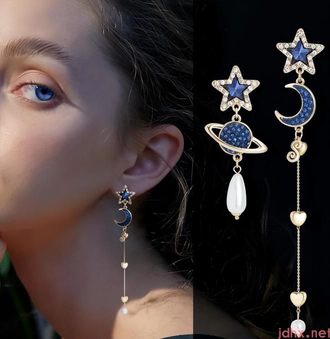 “星月相惜,彼此守护”。星星搭配月亮的外型,就像星星守护着月亮一样,两个人彼此喜欢,而且互相欣赏,寓意两个人相亲相爱,如胶似漆。耳夹和耳钉两种类型,还可以戴在脖子上,如果不想打耳钉的话,可以选择耳夹,随时随地,想戴就戴,使用S925银针、合金、仿水晶、仿珍珠材质。耳坠设计很独特,一只长款,一只短款,不对称成的美,感觉戴上这款耳坠,绝对是人群中的焦点呀。
