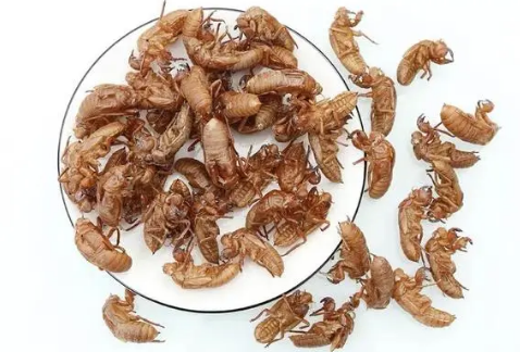 金蝉壳也被称为蝉退、蝉蜕、蝉衣、虫蜕、蝉壳、知了皮等,其味甘、性寒,归肺、肝经,对于人体来说具有散风除热、利咽透疹、退翳解痉的作用,是可以用来泡酒的。