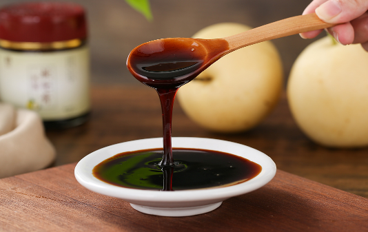 让煮熟的秋梨膏自然冷却。当温度约为40℃时,加入少许蜂蜜并搅拌均匀。其目的是调节口感,延长货架期,防止秋梨膏冷却后变硬。最后,把它放在一个干净的玻璃瓶中,盖紧盖子,放进冰箱冷藏。