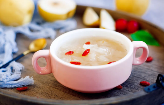 4.其他搭配:梨还可以与枸杞、蜂蜜、蘑菇、银耳等一起煮熟,都有润肺清火的功效。